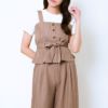 《ウエストリボン×セットアップ》レディース ビスチェ&ワイドパンツ 上下セット 春夏秋 美シルエット