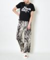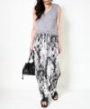 パンツ自体のデザインが大胆なので、シンプルなトップスと組み合わせることでバランスが取りやすくなります。