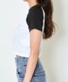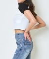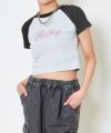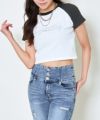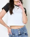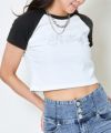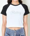 コンパクトな丈に、中央に施されたラインストーンのロゴがアクセント。キラキラと光を反射するラインストーンは、動くたびにさりげなく存在感を放ち、コーデ全体に華やかさをプラスしてくれます。