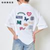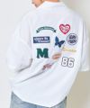 背面には目を引く10個のワッペンが大胆に配置されており、蝶々やロゴなど、可愛らしさとストリート要素が絶妙にミックスされたデザインが魅力です。