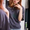 全体的に、シンプルなカラーリングながら、刺繍の立体感がデザインに深みを加えています。また、刺繍特有の高級感があり、プリントTシャツとは違った大人っぽさを演出できます。