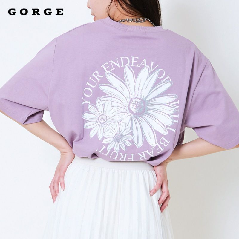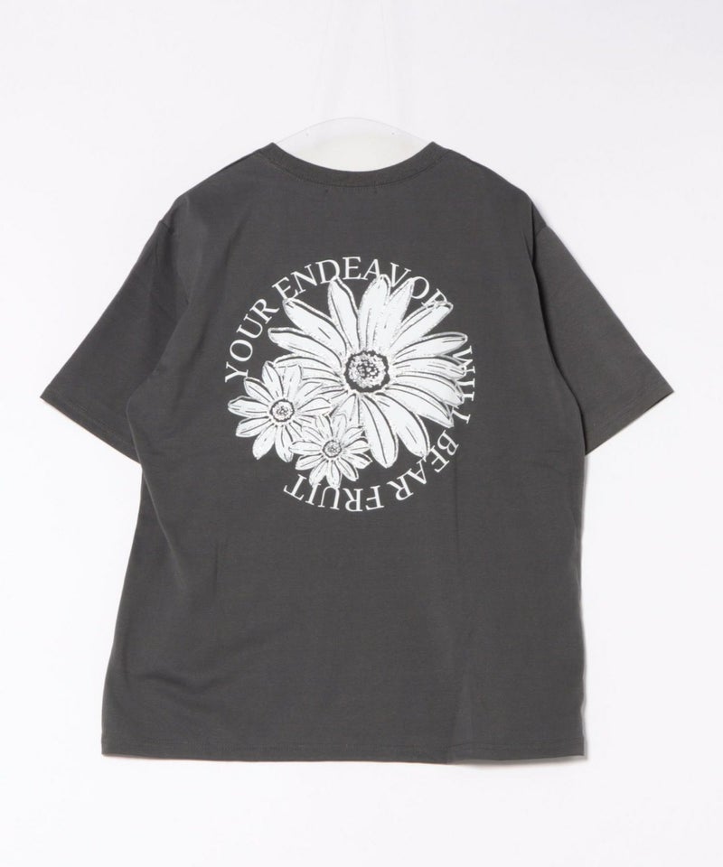 ・背中に大胆な花柄×ロゴのサークルプリントをON