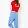 ハイウエストのデニムやフレアスカートと相性が良く、トレンドのY2Kファッションともマッチします。アクセサリーやレイヤードアイテム次第でさまざまな着こなしが可能なため、幅広いコーディネートに取り入れやすいのも魅力です。