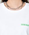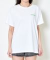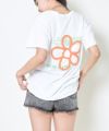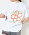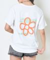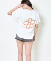 背面に立体的な大きな青い花の刺繍を施され、目を引き、カジュアルながらも個性的なデザインとなっています。さらに、文字が明るい印象を与えます。