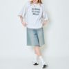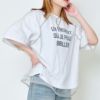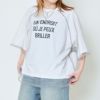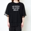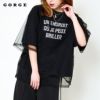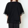 透け感のあるチュールが重なることで、奥行きのあるデザインに仕上がっています。ロゴ部分がチュール越しに見えることで、さりげなくアクセントになり、シンプルなロゴTとは一味違ったおしゃれな雰囲気に。