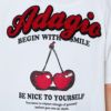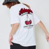 後ろのサガラ刺繍が通常のプリントとは違い、ふんわりとした立体的なデザインが魅力。チェリーの可愛らしさが引き立ち、シンプルなTシャツながらもアクセントが効いたデザインになっています。