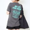 ハンバーガーをモチーフにした発泡プリントが立体感を生み、シンプルなTシャツに遊び心をプラス。コンパクトなシルエットで、合わせるアイテムを選ばず、デイリーユースにも最適です。