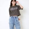 ツイル貼り付けデザインがアクセント!ショート丈Tシャツ
