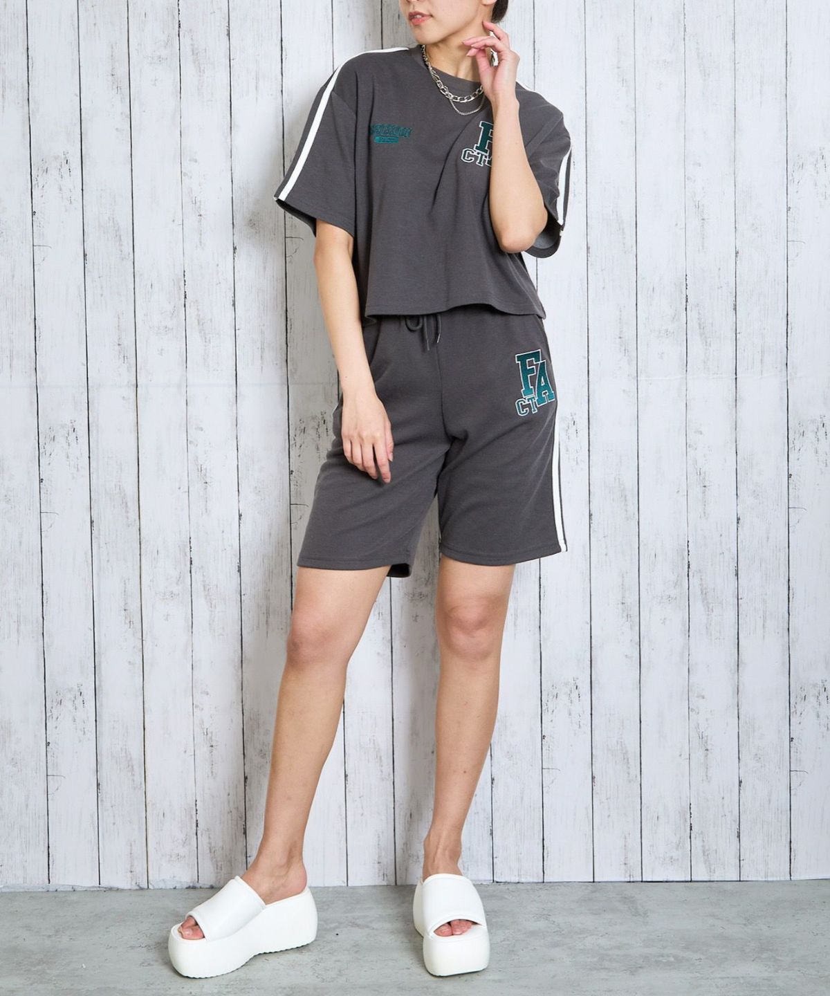 他の画像を見る 《ライン刺繍×スポーティ》レディース 裏毛 ハーフパンツ イージーショーツ セットアップ対応 春夏秋 2BUY10%OFF 定価 ¥ 4,389 のところ SALE価格 ¥ 2,194 税込 カートに入れる お気に入りに登録する