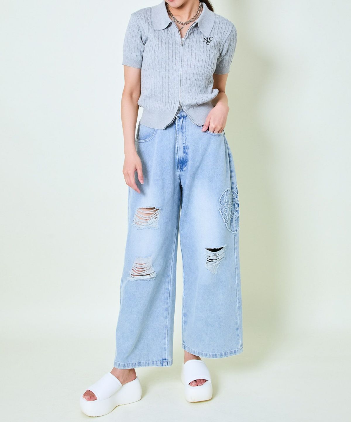他の画像を見る 《シアーレース×肌見せ》レディース ワイドデニムパンツ 春夏秋 2BUY10%OFF 定価 ¥ 6,589 のところ SALE価格 ¥ 3,294 税込 カートに入れる お気に入りに登録する