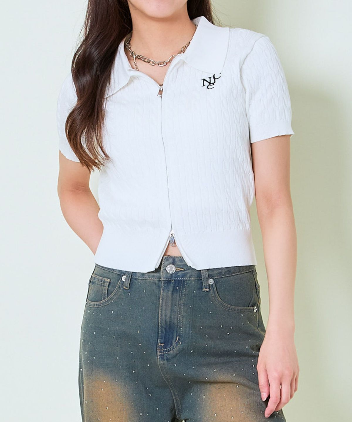 他の画像を見る 《ダブルジップ×ロゴ刺繍》ストリートニットトップ/WZIPカーデ 2BUY10%OFF 定価 ¥ 4,939 のところ SALE価格 ¥ 2,469 税込 カートに入れる お気に入りに登録する