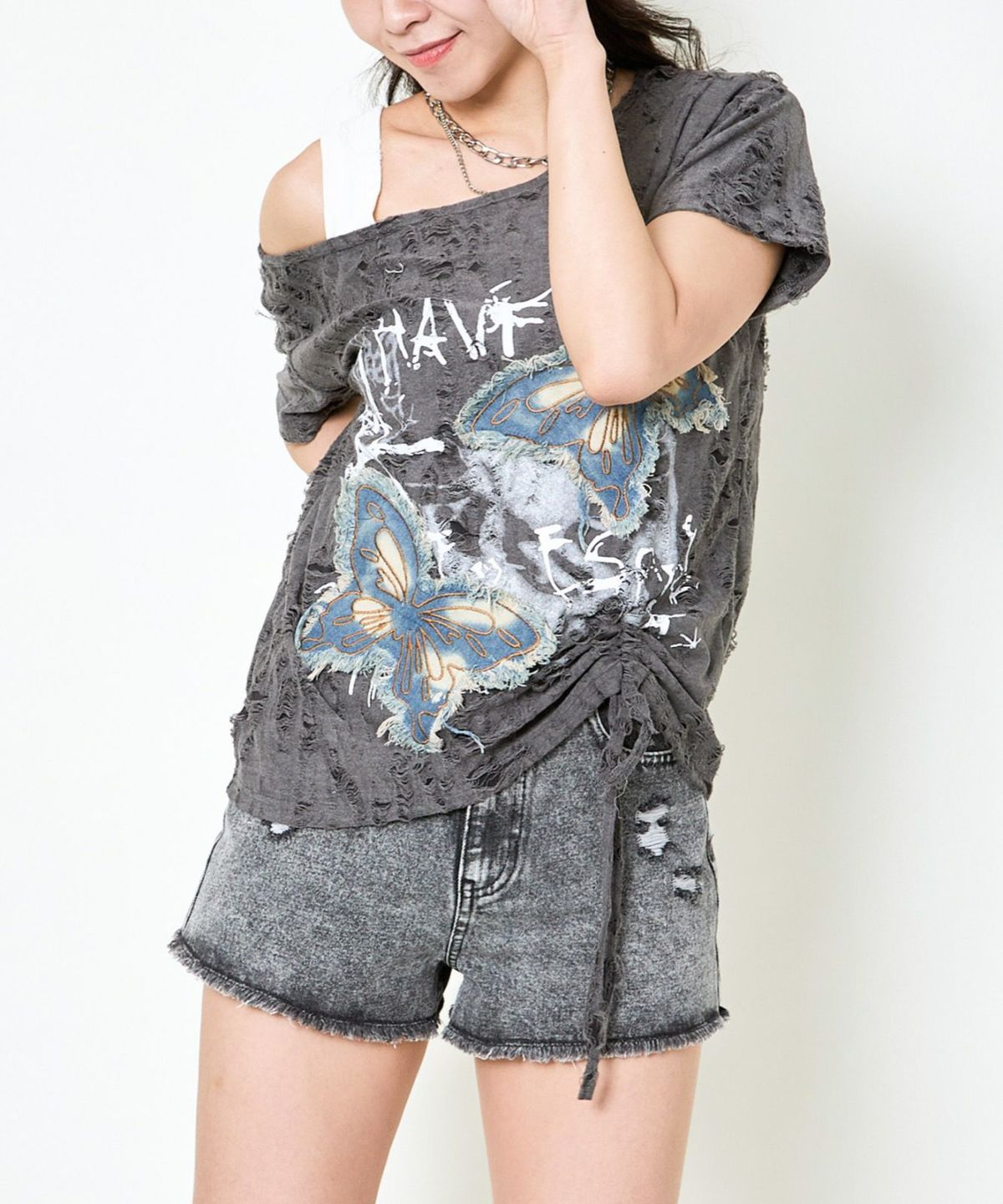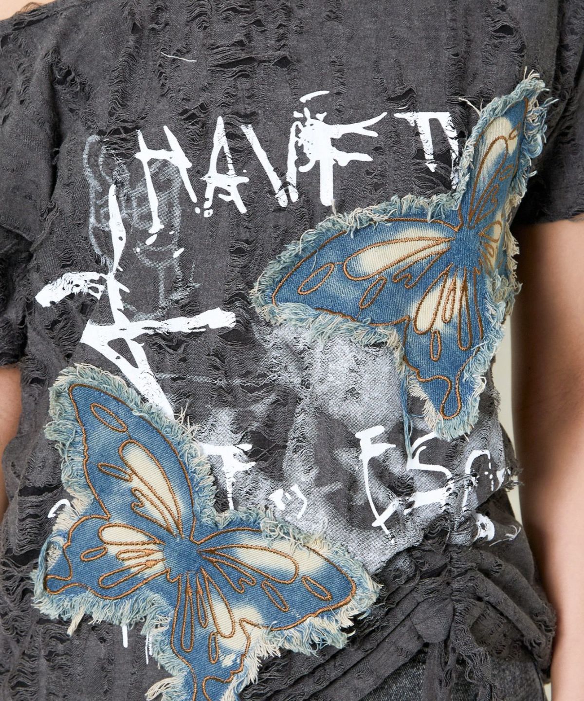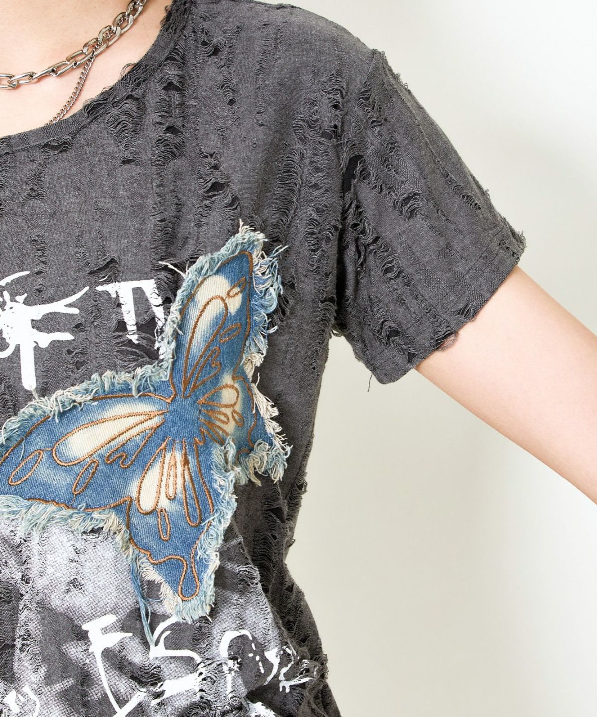 他の画像を見る 《デニム蝶×ワンショル風》クラッシュTシャツ/個性派エモ映え 2BUY10%OFF 定価 ¥ 4,389 のところ SALE価格 ¥ 2,194 税込 カートに入れる お気に入りに登録する