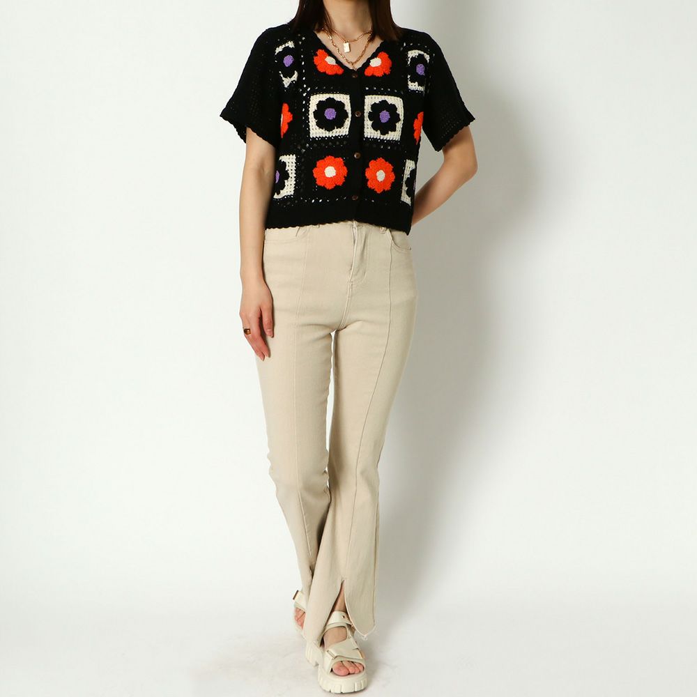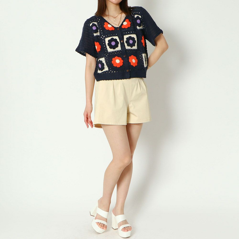 かぎ針多色短丈カーディガン