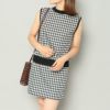プチハイ ハイネック ノースリ 柄 ノースリーブ トップス 幾何学 千鳥 ジャガード 2131816
