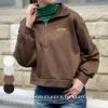 大きなジップが付いたハーフZIP短丈裏起毛プルオーバーが登場★