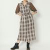 袖がシアーになった異素材ドッキングの秋らしいカラーのチェックワンピースが登場★ウエストベルトできれいなXラインが実現♪シアー袖はパフスリーブで、二の腕もカバー◎程よいAラインなので、気になる下半身の体型も拾わず1枚で女性らしさも兼ね備えたラクチンにおしゃれになれるワンピースです☆