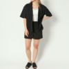 メンズライクな少し長めの半袖が大人っぽい印象のコットンライクジャケットが登場★開襟のデザインで顔周りをすっきりみせてくれる♪セットアップではもちろん、デニムパンツやスキニーパンツなどを合わせるなど単体でもコーディネートが広がる◎ショートパンツ(2323576)とセットアップでもご着用していただけます☆