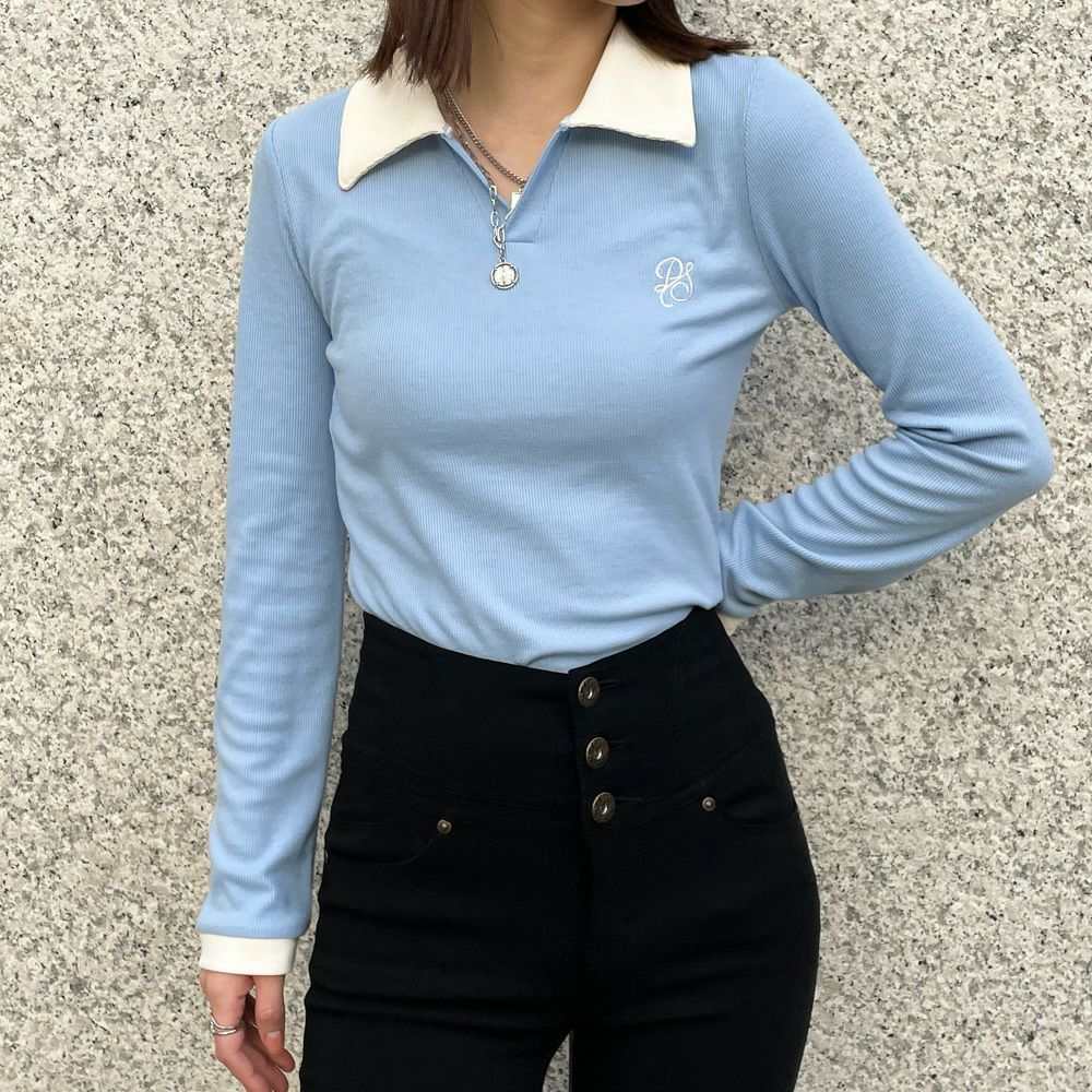 テレコ配色スキッパープルオーバー