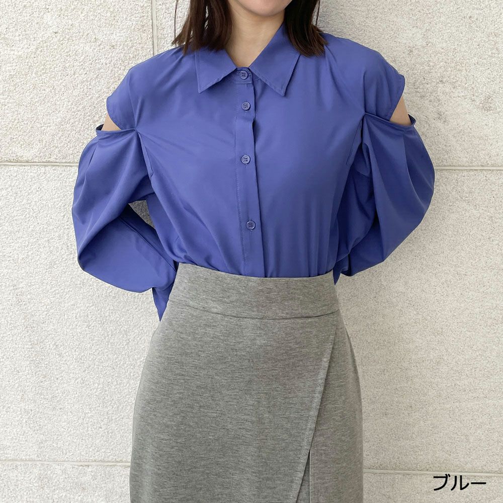肩開き無地シャツ