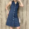 レイヤードスタイルにもぴったりなノースリワンピースは、ステッチ&ボタンがデザインのポイント☆タイトなシルエットですが強めのストレッチがきいているので締め付け感もなく、ボディラインを綺麗に見せてくれます。うれしいサイドポケット付き♪