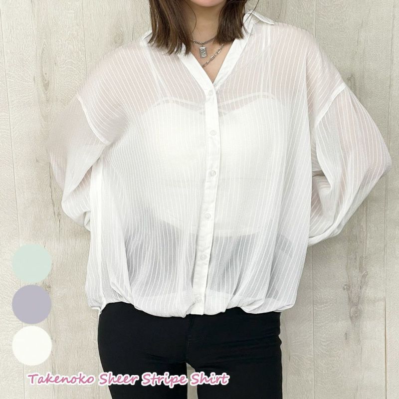 シャツ トップス シアー ストライプ タケノコ 春 秋 2310992