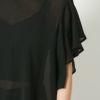前後2wayでスタイリングできるラッフルブラウスが登場★透け感がありとろみのある柔らかな質感が可愛いらしいアイテム♪動きのあるフレアの袖が女性らしさを演出◎様々なシーンで活躍してくれます!