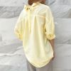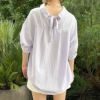抜け感を演出してくれる5分袖スキッパーシャツが登場★ゆとりのあるサイズ感ながら襟のスキッパーデザインとバックリボンが抜け感のあるルックスに♪ヒップが隠れる長さとタックのふんわり感でナチュラルに体型カバー◎トップスINが苦手な方でも、バランス良くコーディネートできるのでおすすめです☆
