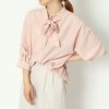 ブラウス トップス 7分袖 ボウタイ タケノコ 春 夏 2311035