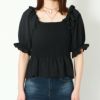 ブラウス トップス フリル シャーリング 無地 春 夏 秋 2313529