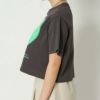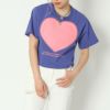 ハート型にエンボス加工がされた可愛いTシャツが登場★目を惹く個性的な配色がポップで甘くなりすぎないアイテム!デニムと合わせたカジュアルなコーデがオススメ☆絶妙な丈感でハイウエストのボトムとの相性抜群◎スタイルアップ効果も期待できます♪