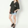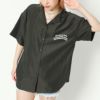 大胆なバックの刺繍のデザインが可愛い開襟シャツが登場★トレンド感あるポップなトラデザインとロゴを贅沢に刺繍に落とし込んだユーモラスなアイテム♪凝った刺繍がプチプラで手に入るのも嬉しいポイント◎羽織としても重宝できるお洒落な1着で、夏のワードローブの主役になります☆