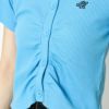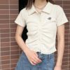 フロントのギャザーがレディライクな印象のトップスが登場★伸縮性がありボディラインに程よくフィットするテレコリブ素材♪胸元の刺繍もコーディネートのポイントに◎短丈のコンパクトなトップスはミニスカートと合わせてY2Kムードにしたり、ワイドデニムや太めのカーゴパンツ合わせが今年らしく決まります☆