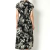 スケッチのようなレトロな雰囲気の花柄が可愛いフレンチスリーブワンピースが登場★胸元がV字に開いたオープンカラータイプなので、デコルテもすっきり♪ウエストゴムでストレスフリーな着心地◎サンダルやパンプス合わせのきれいめスタイルはもちろん、スニーカーでカジュアルダウンさせるのもオススメです☆