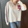 袖のライン使いがスポーティな雰囲気のハーフジップトップスが登場★ラフな着こなしを叶えるビッグなシルエットでトレンドコーデが完成♪フロントには大きな刺繍ロゴでアクセントをプラス◎1枚ではもちろん、インナーにロンTなどを合わせてシーズン長く着回せます☆