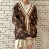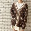 英字のモノグラム柄がオシャレなカーディガンが登場★秋らしいカラーでシーズンムードを高めてくれる◎ゆったりしたサイジングで様々なトップスの上から羽織れるのも嬉しいポイント♪ミニスカートやロングブーツと合わせた今っぽいコーデがオススメです☆