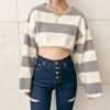存在感のあるワイドボーダーデザインが目を惹くクロップドボーダーニットが登場★大胆な配色とコンパクトな見頃がスタイリッシュな一枚♪長めの袖丈とクロップド丈の絶妙なバランスでスタイルアップ◎ハイウエストのボトムスと相性抜群でワイドデニムやカーゴパンツと合わせたストリートスタイル、ミニ丈のボトムス+ロングブーツと合わせた韓国コーデもオススメです☆