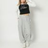 配色のラグランデザインがアクセントとなった、1枚で決まるクロップド丈のロンTが登場★フロントにあしらったラインストーンのロゴがレディなアクセントを添えるアイテム♪コンパクトなサイズ感で女性らしいシルエット◎デニムはもちろん、カーゴパンツやショートパンツとの相性がよくストリートからカジュアルまで幅広く着ていただけます☆