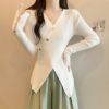 ボタンを斜めにあしらったデザイン性のあるニット。