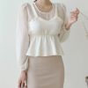 ビスチェをレイヤードしたかようのなトレンド感あるトップス。フラワー柄のふくれジャガード生地とレースの相性バツグン。きゅっと締まるペプラムデザインでパンツやスカートどちらにも合う主役アイテムです。