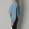 コンパクトな丈感がポイントの柔らかデニムシャツ。フロントボタンがハートになったさりげなく可愛いアイテム。ショート丈がトレンド要素をプラス。気温に合わせて中に合わせるアイテムを変えて、ロングシーズン着用可能。
