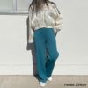 脚長効果抜群のフレアシルエットが魅力的なパンツ。ウエストゴムと伸縮性のあるリブ素材でストレスフリーな履き心地。どんなトップスとも相性が良く、デイリー使いに最適。