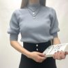 細かなラメがトレンド感のあるリブニットトップス。ハイネックとふくらみのある袖で華奢見えが叶います★キレイめ女っぽコーデにオススメです!