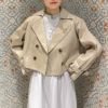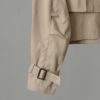 季節の変わり目の羽織りにちょうどいい、裏地の無いショートトレンチジャケット。袖口のキャンディースリーブやバックスタイルのプリーツ切り替えで、マニッシュになりがちなトレンチをフェミニンな印象にアップデート。襟元の開きを大きく設定する事で、顔周りをスッキリ見せてくれる効果も◎付属のブローチ華やかなインパクトもプラス。