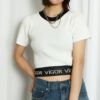 艶感のあるラメ入りニットトップスで、いつもの着こなしをアップデート。トレンドのコンパクトなシルエットで旬顔に☆ウエストにジャガードされたロゴがポイントになり、コーデを引き立てます◎