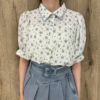 花柄のダブルカラーがアクセントになったブラウス。袖口のタックがぽわんとした愛らしいパススリーブが可愛いアイテム。パンツ、スカートどちらも合わせやすくボトムに悩まず着ていただけます。
