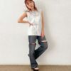 トレンドのスリット入りデニムパンツ。スリットデザインで、ヘルシーな肌見せが叶う女性らしいアイテム。トレンドのクロップド丈トップスと相性抜群。カジュアルなTシャツから甘めなブラウスまで合わせていただけます。足元は厚底スニーカーやスポサンがおすすめです。