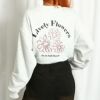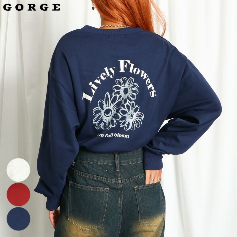 フラワーモチーフのラメ入りバックプリントが可愛らしいショート丈スウェット。裾のドローコードを絞って自分好みのシルエットがつくれる♪ショート丈&幅広シルエットで華奢見え+足長効果も。ロングスカートやハイウエストボトムスと好相性◎
