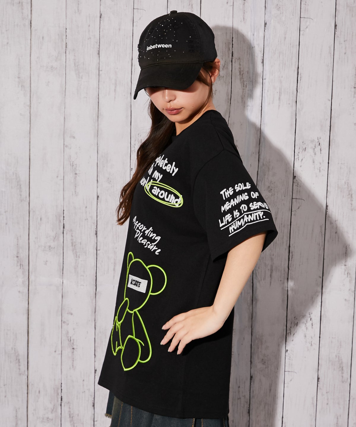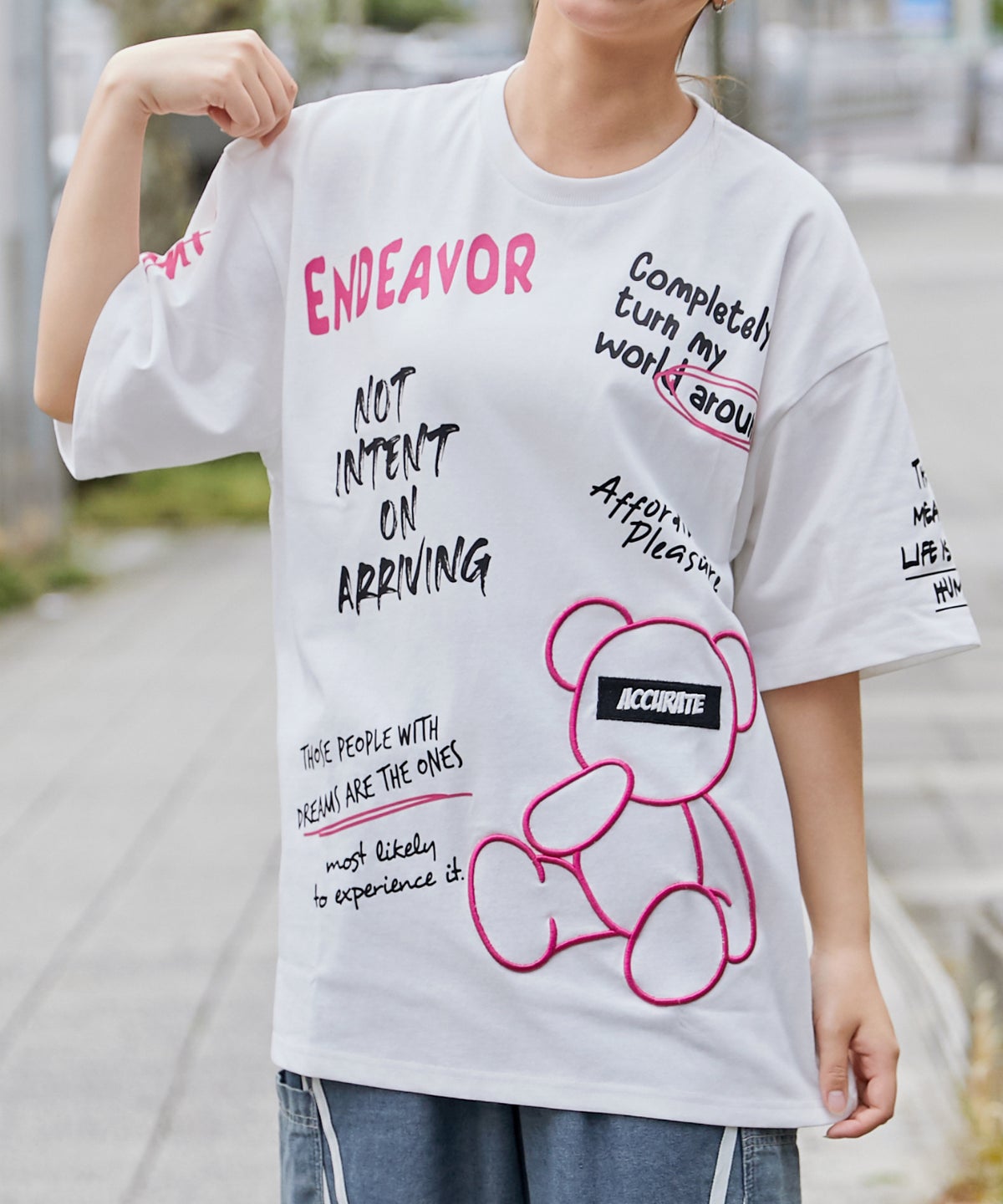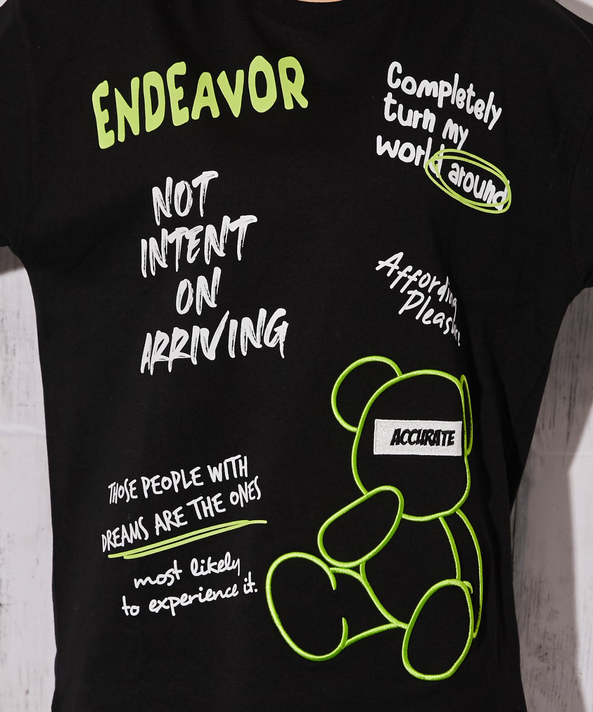 《くまビッグ刺繍×落書きロゴ》Tシャツ/ストリート/春夏/全2色