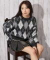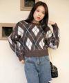 《アーガイル×ラメMIX》レディース シャギーニット ラメ入り ニットトップス ふんわり 短丈 秋冬