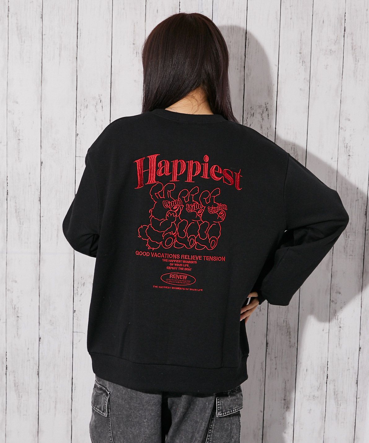 《バック刺繍×ラビットデザイン》レディース 裏起毛 スウェット トレーナー カジュアル 秋冬